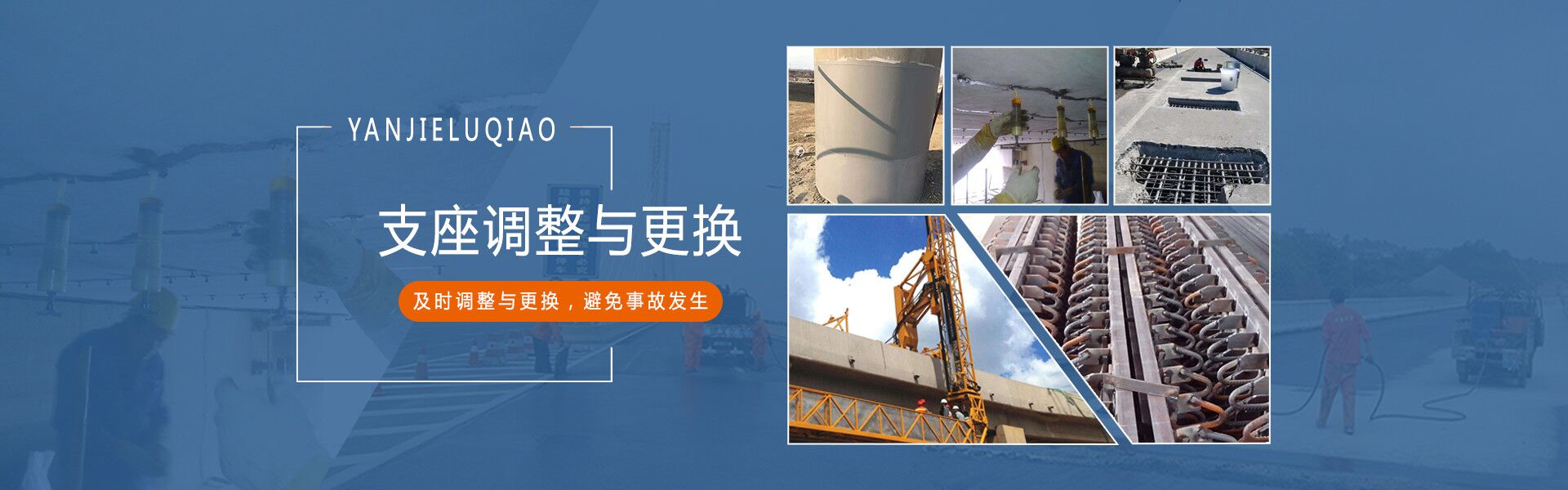 本公司集科研、生產、銷售、施工于一體,主要從事橋梁加固、隧道防水、涂料施工、支座調整、更換、橋面防水、施工、橋面拋丸、銑刨、路面粘結施工、伸縮縫的安裝與維護。